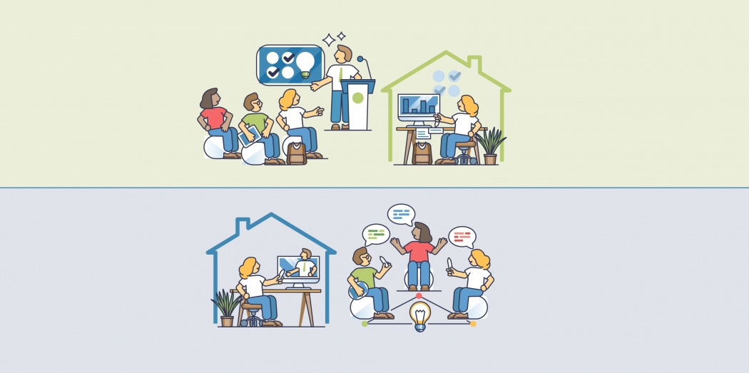 بمعنى آخر، تُعكس الأدوار: فالتعلّم النظريّ يحدث في المنزل، بينما يصبح الصفّ مكانًا للتعلّم النشط التفاعليّ، باستخدام وسائل تعليميّة مساندة، مثل مقاطع الفيديو التعليميّة، والاختبارات القصيرة، أو حتّى توظيف وسائل التواصل الاجتماعيّ للتواصل مع الطلّاب، وتزويدهم بما يحتاجون إليه من مراجع ووسائط تعلّم.